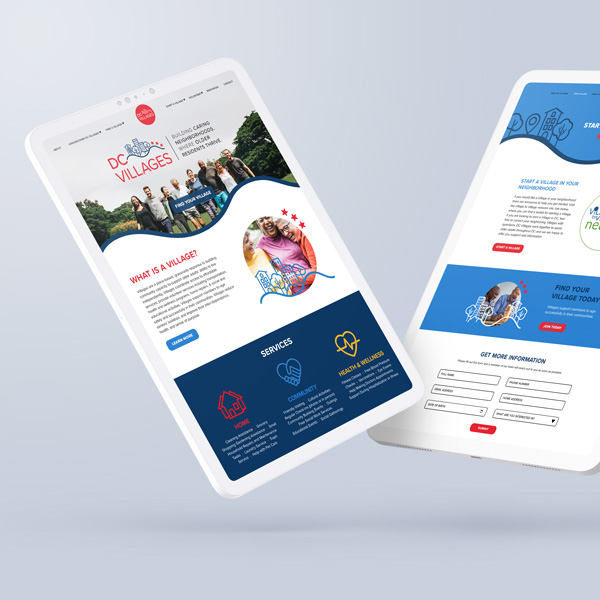 With the new brand established, we designed and developed a clean, easy-to-use website that serves as a central hub for the DC Villages network. The experience was intentionally simple and intuitive, making it easy for users to understand the organization’s mission, explore services, and connect with their local Village. Thoughtful navigation, clear content structure, and approachable design elements ensure the website is accessible to a wide range of users while reinforcing the welcoming, community-first nature of the brand.